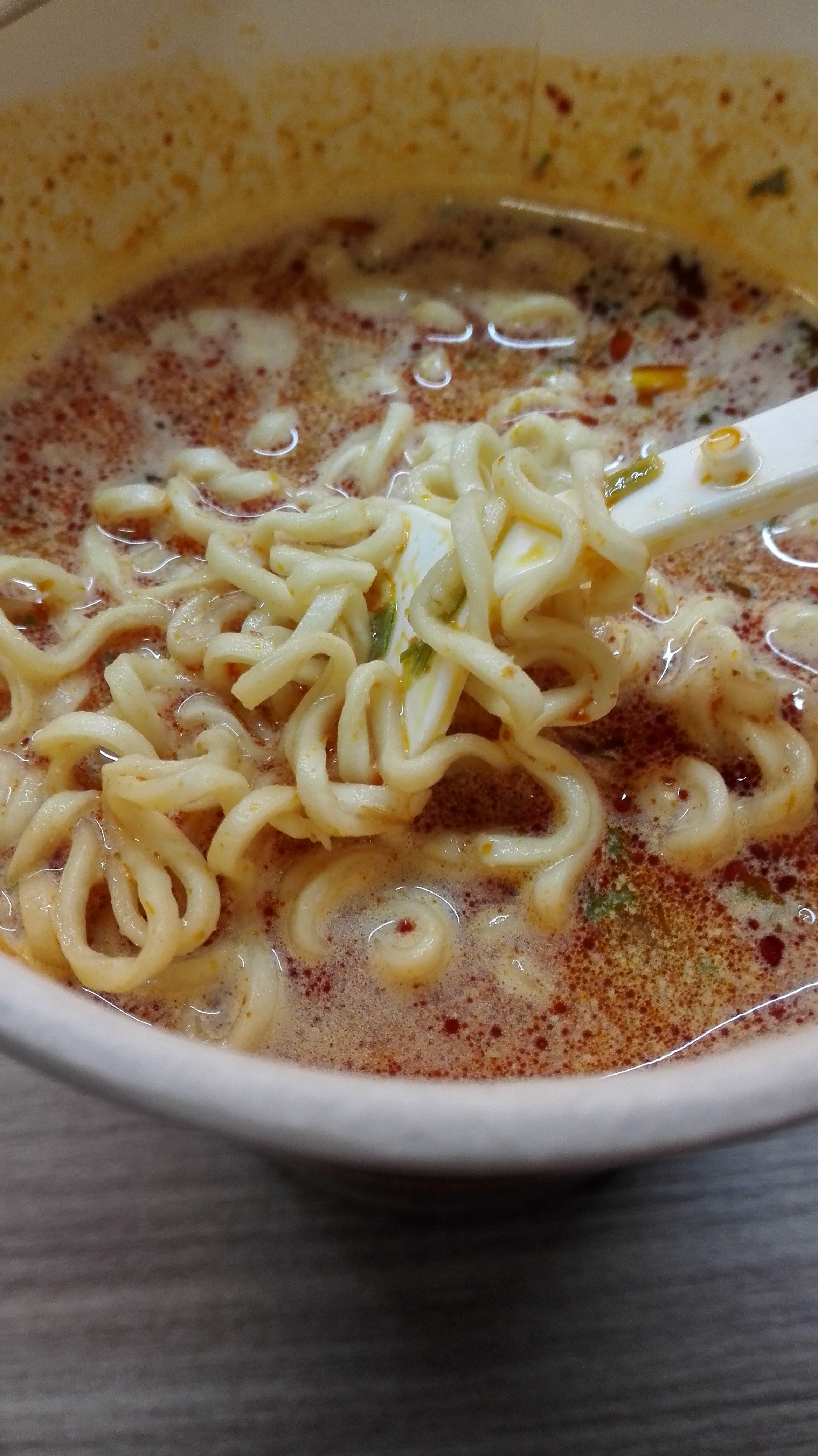汤底:较为浓厚,纯正的辛辣混着芝士的醇厚,一种很西式而不是如康师傅那种味精汤底的鲜美,喝完之后还有芝士的回味。
